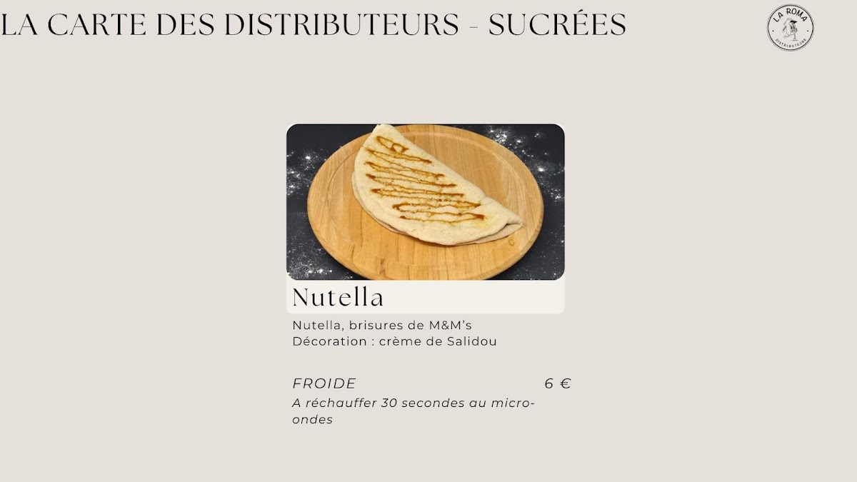 Beyond savory, the sweet Nutella pizza topped with M&M's and a touch of crème de Salidou completes the menu with a playful twist. Users praise the seamless payment system and flexibility to enjoy their pizzas either hot or cold—ideal for spontaneous meals on the go. La Roma’s balance of quality ingredients, bold flavors, and user-friendly service makes it a standout in automated dining.